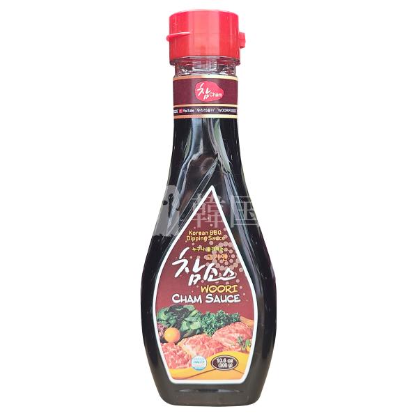 WOORIチャムソース(チャムソス)は、韓国で焼肉のタレとして親しまれている、しょうゆ・砂糖・お酢をベースとした甘酸っぱい調味料。