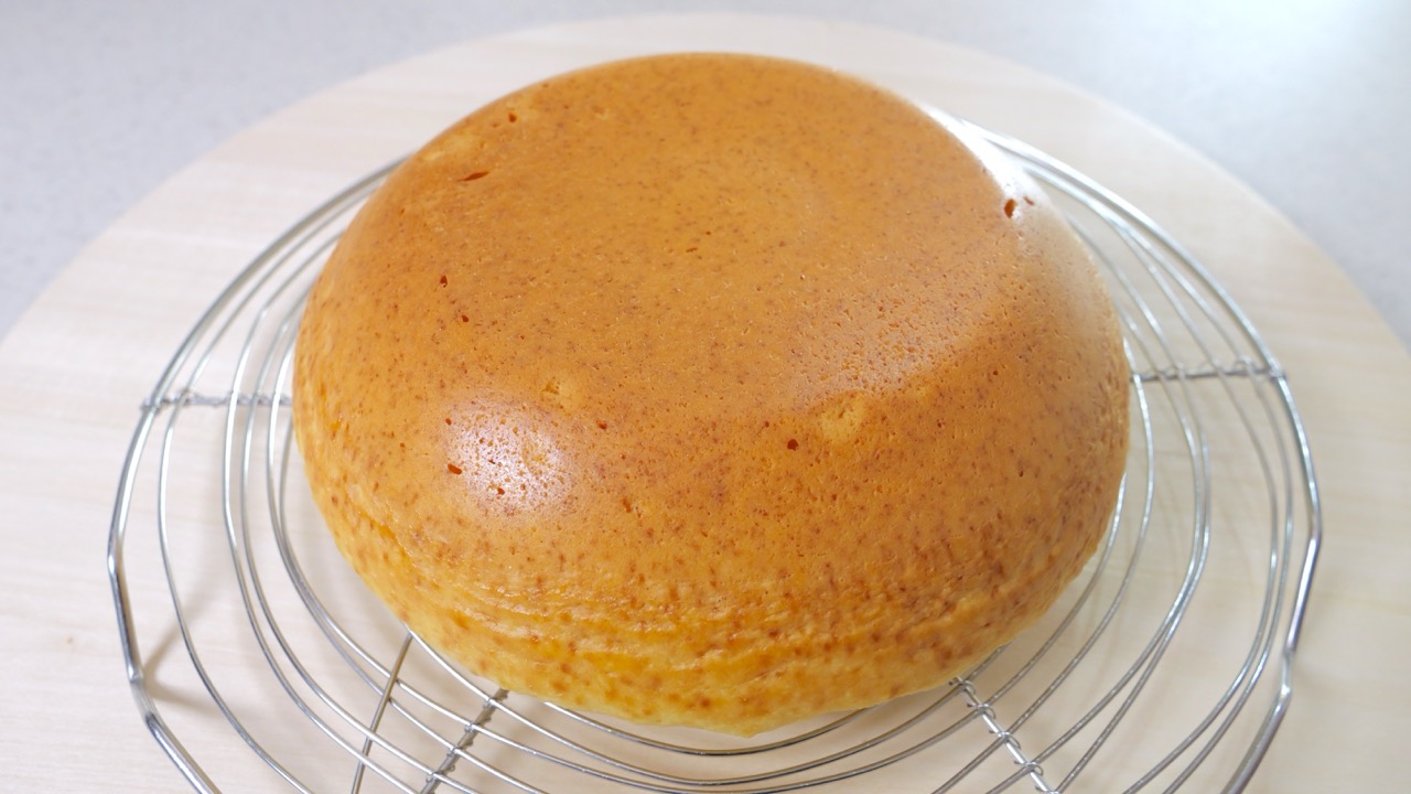 焼き上がりです。やけどに注意しながら内鍋を取り出し、ケーキクーラーなどの上で冷まします。お好みのサイズにカットしたら完成です。