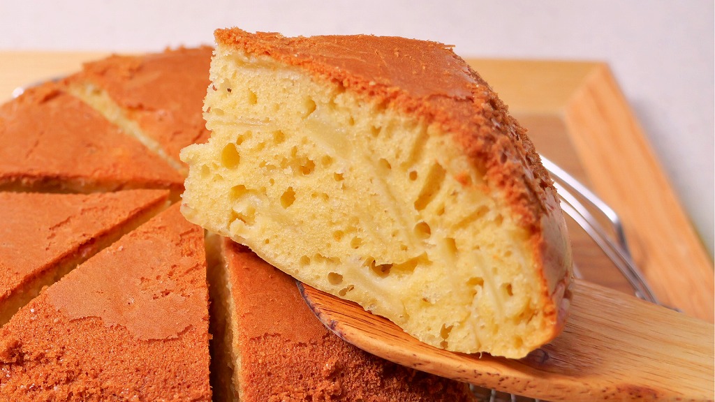 「蒸しパン風リンゴケーキ」よりも、スポンジがふわふわの仕上がりになります。
