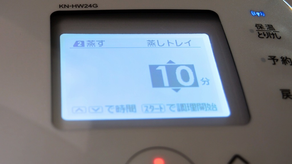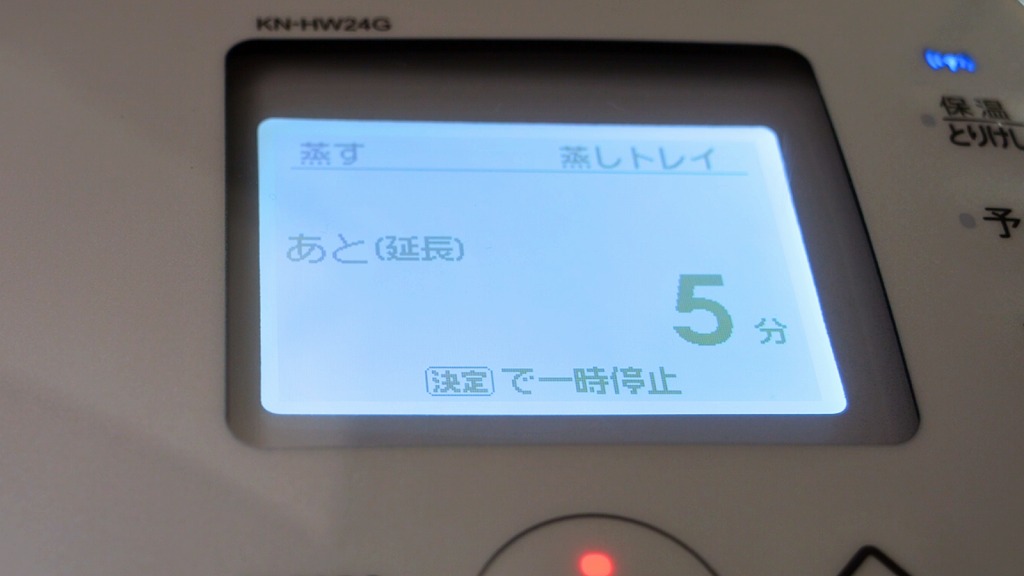 内鍋を本体へ戻して、【延長加熱5分】でスタートします。