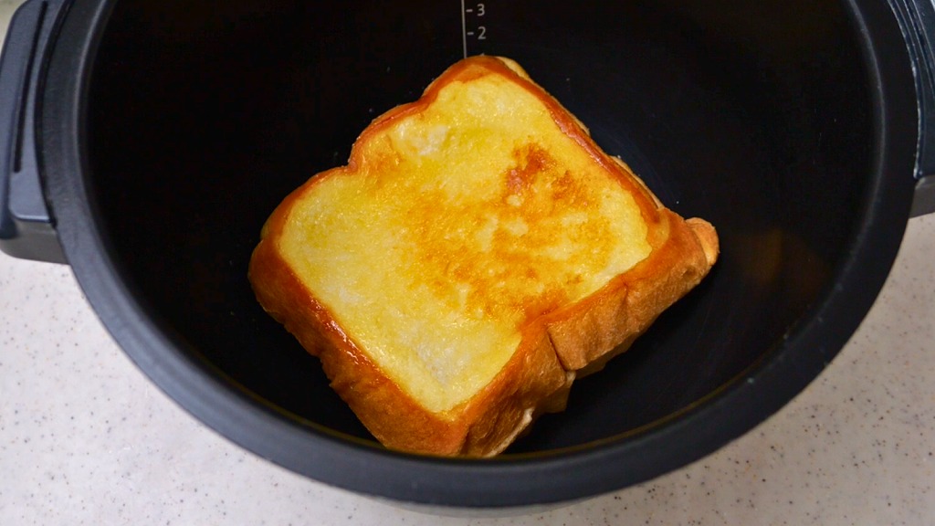 卵液を吸った食パンは、とても柔らかいです。シリコン製のフライ返しでそっと内鍋へいれることをオススメします。(箸だと崩れるかもしれません)