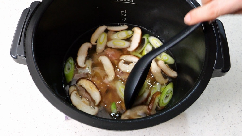 内鍋を本体にセットして、手動で作る → 煮物を作る → まぜない → 4分 でスタート。