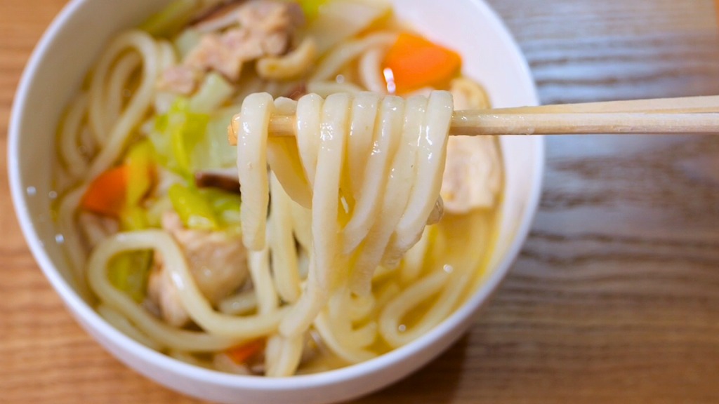 野菜やお肉の旨味がスープに溶け出し、それがまたうどんに染み込んで、しみじみと美味しい…。