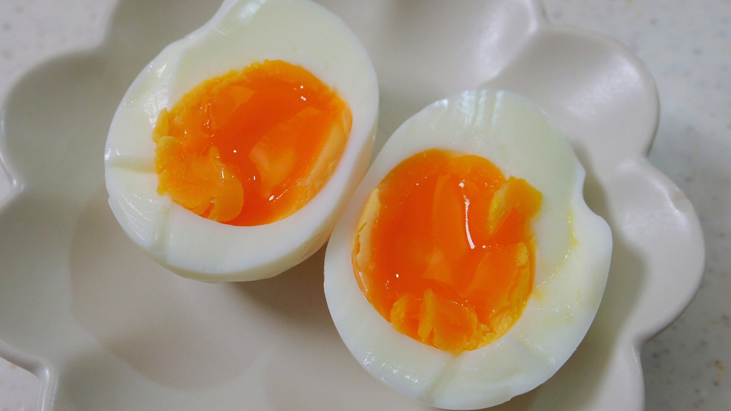 固まってはいますが、黄身の一部がすこし半熟よりです!子供は、この仕上がりが一番好きなようです。