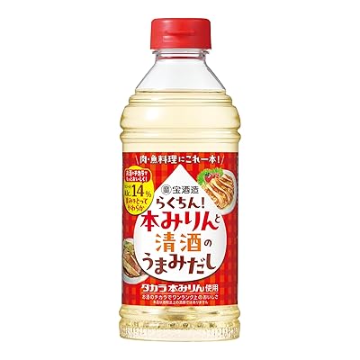 宝酒造さんおなじみの「タカラ本みりん」「タカラ料理のための清酒」に「かつお・しいたけ・こんぶのダシ」が加わり、この1本にギュッと凝縮!だし旨系の塩味がこれ1本でバッチリ出せるというスグレモノです。