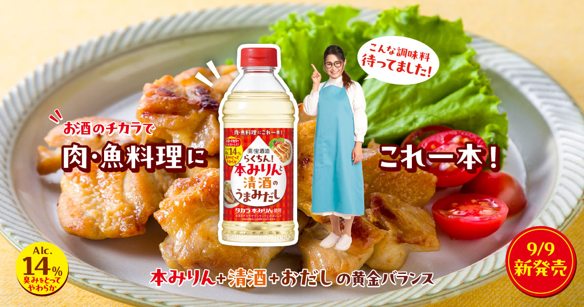 「らくちん! 本みりんと清酒のうまみだし」は、宝酒造から2025年9月9日に新発売された家庭用の万能調味料。